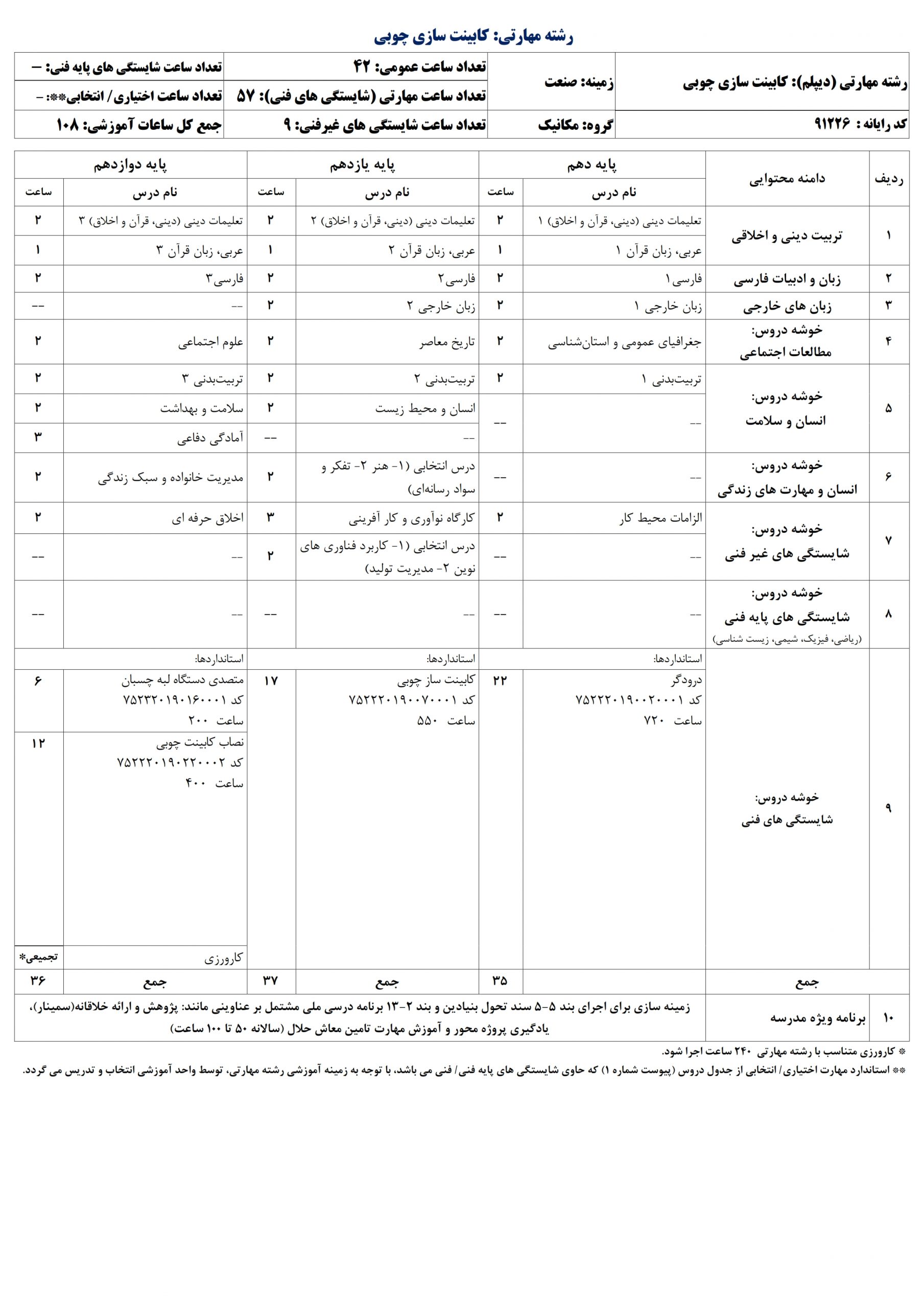 دیپلم کابینت سازی کاردانش کد رایانه ای : 91226 | رشته کابینت سازی | هنرستان کابینت سازی